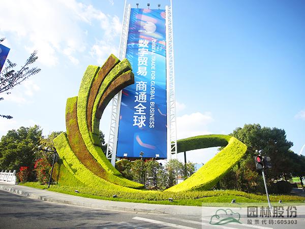 為增加數(shù)貿(mào)展會主題在邊側(cè)帶內(nèi)設(shè)置3座綠雕:杭扇-以扇子造型主題的全球數(shù)字貿(mào)易博覽會綠雕,展-以全球數(shù)字貿(mào)易博覽會會徽造型綠雕,數(shù)貿(mào)-以飄帶造型主題的“數(shù)貿(mào)錢潮 杭向未來”綠雕。綠雕植物均采用佛甲草和五色草搭配,周邊采用三角梅及花鏡植物配置。港南大道島頭花鏡運用金姬錐、彩葉球、細(xì)葉芒、塞娜等植物來強(qiáng)化迎賓氣氛,通過多年生地被草花,結(jié)合精致植物組團(tuán)+特色綠雕,共同營造多彩氛圍,打造熱烈迎賓門戶。